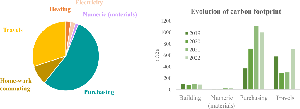 Mivegec1point5 has been carrying out a regular carbon footprint assessment since 2019. This makes it possible to identify the unit’s most significant impacts and to consider appropriate actions to reduce our environmental footprint. As in many biology laboratories, our greatest impact is linked to purchasing and then to travels.