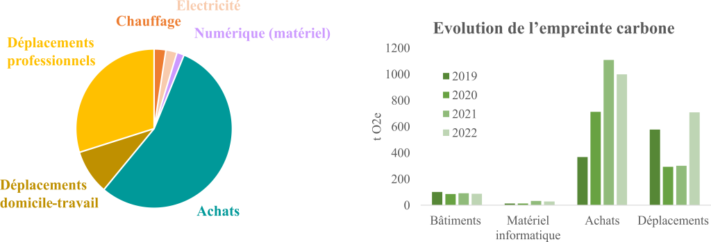 Mivegec1point5 réalise un bilan carbone régulier depuis 2019. Il permet de prendre conscience des points les plus impactants de l’unité, et de réfléchir aux actions adaptées pour réduire l’empreinte environnementale. Comme dans beaucoup de laboratoires de biologie, notre impact le plus fort est lié aux achats puis aux déplacements professionnels.